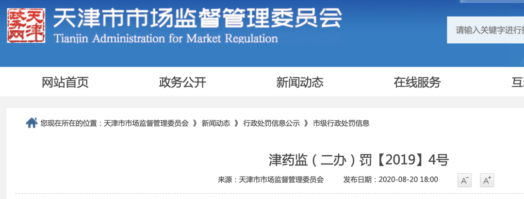 津藥監(jiān)(二辦)罰〔2019〕4號
